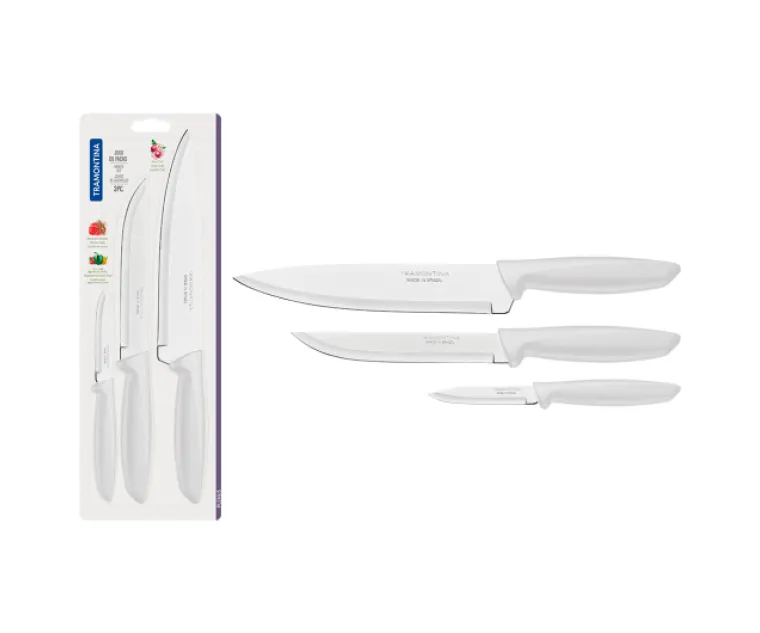 Cuchillo TRAMONTINA PLENUS 3 Piezas 3/6/8 " Mango Blanco Cod. 23498/826