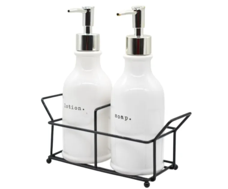 Dispensador Jab. Liq. x 2 Ceramica C/Base Metal Negro Cod. BA8264
