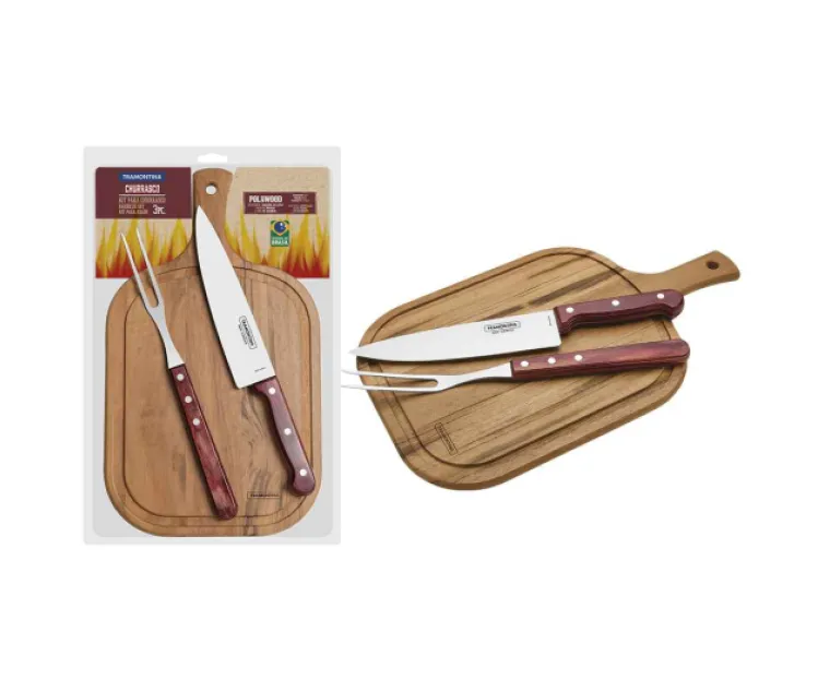 JUEGO CUCHILLA, TENEDOR Y TABLA TRAMONTINA 21198/714