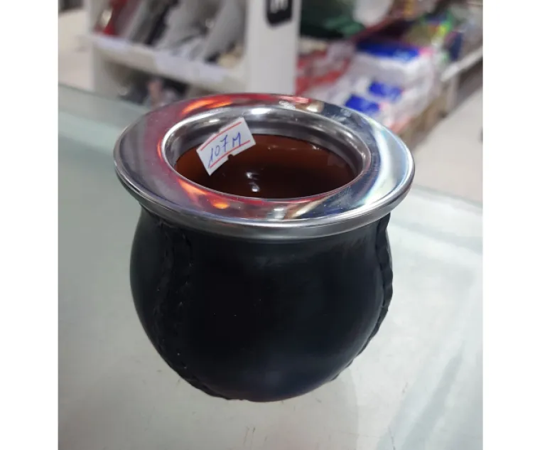 Mate Ceramica Chato Con Boquilla Forrado Cuero Cod. 107M