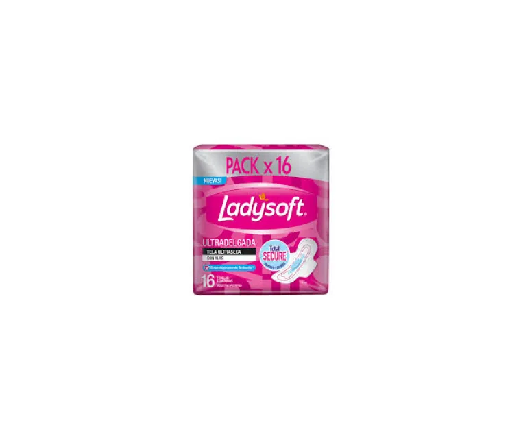 Toalla Femenina LADYSOFT Ultradelgada Ultraseca con Alas 16 Unidades Cod. 7790250097471