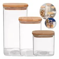 Frasco Acrilico Hermetico Tapa Madera Base Cuadrada 1,3 lts ...