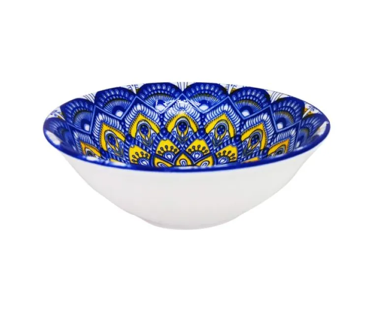Bols Ceramica Diseño Mandala Azul y Amarillo 15 cms. Diametro Cod.