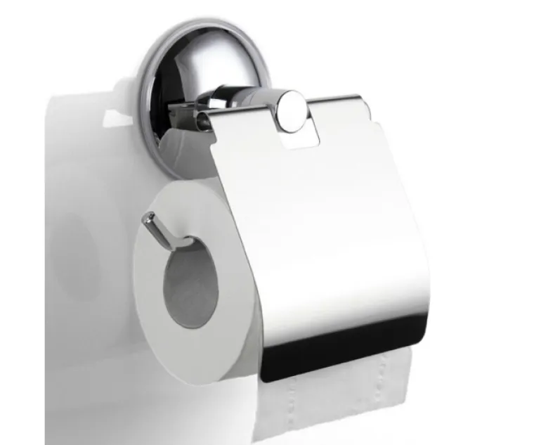 Porta Rollo Papel Higienico Ac. Inox. C/Ventosa P/Pared C/Tapa Cod. EG1699