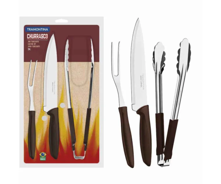 Set/Juego/Conjunto TRAMONTINA para Parrilla de Cuchilla, Tenedor y Pinza Cod. 23498/449